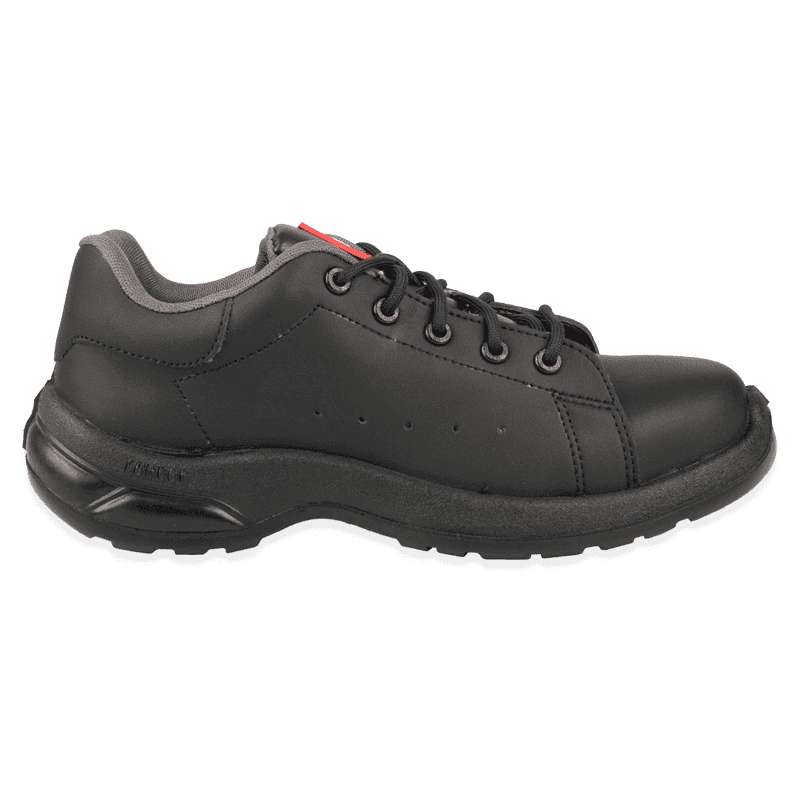 Zapato de seguridad unisex, con punta de seguridad en policarbonato para mitigar riesgos de impacto o compresión. Recomendado en labores industriales y logísticas.